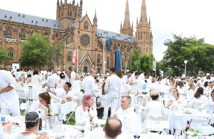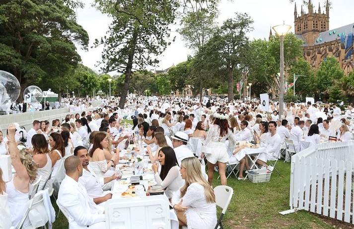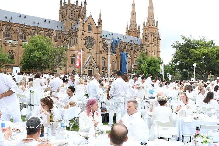 Австралійці і туристи наділи білі вбрання і насолоджувалися вишуканою їжею і вином поруч з фонтаном Арчібальда і високими дерева знакового парку. Захід «Diner en Blanc» або «Вечеря в Білому» - це ексклюзивна, секретна вечірка, місце проведення якої відоме тільки її учасникам.