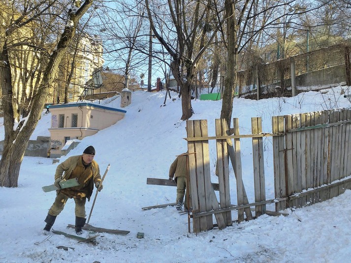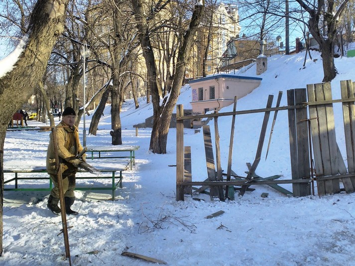 У скандальному сквері на Гончара намагалися встановити паркан (фото)