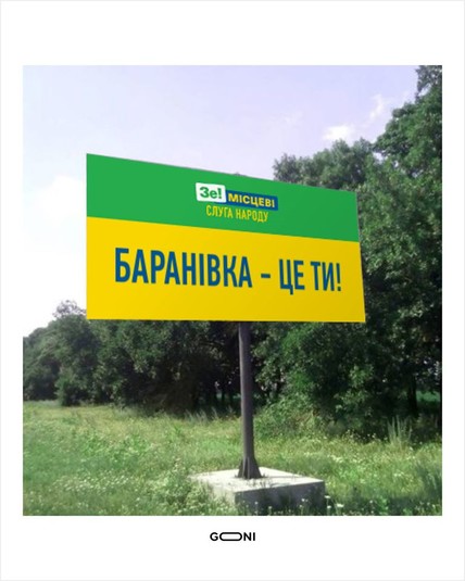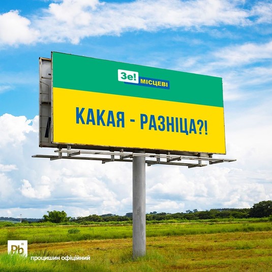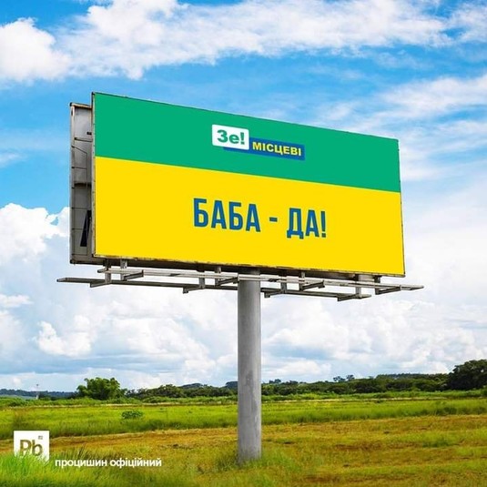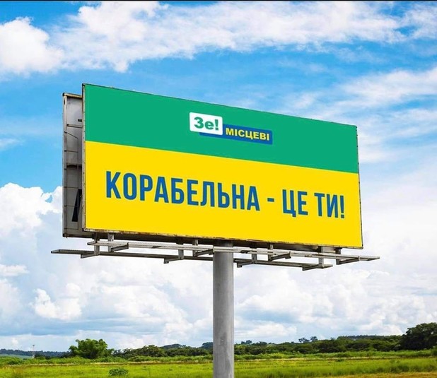 В Україні напередодні місцевих виборів почали з’явилися агітаційні борди в жовто-зеленій кольоровій гаммі «Зе! Слуга народу».