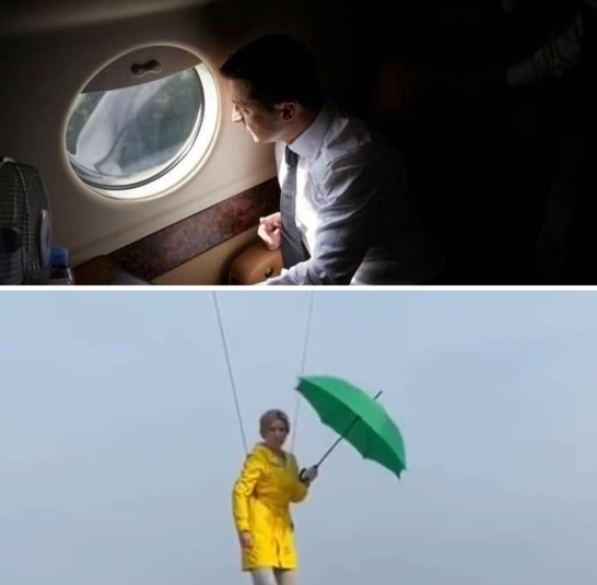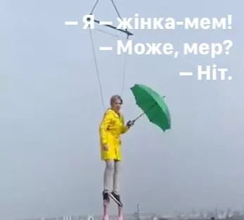 У соцмережах жартують над Верещук, яка «літала» на зеленій парасольці. Добірка фотожаб