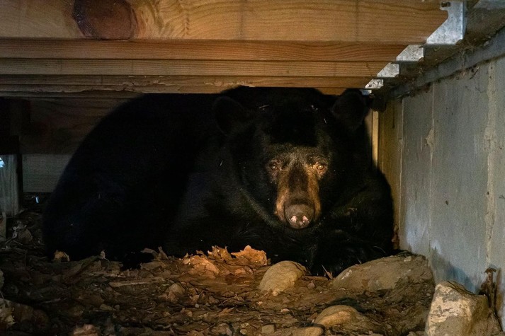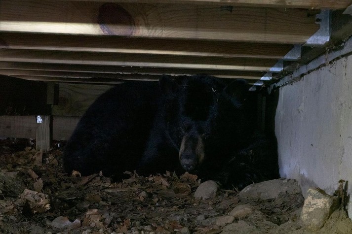 У Конектикуті, мешканці приватного будинку раптово отримали нову «хатню» тваринку. Під їх сходами оселився дикий ведмідь. Схоже, що це місце йому найбільше припало до душі для зимової сплячки.