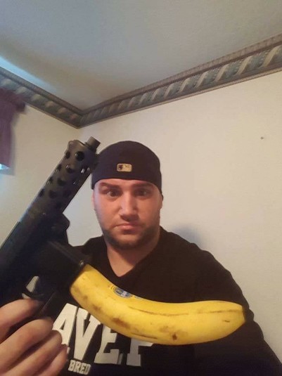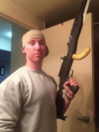 Американці почали фотографуватися з револьверами, гранатометами, кулеметами і пістолетами різних калібрів, але замість магазинів використали різні речі - банани, фени, пульти від телевізорів.