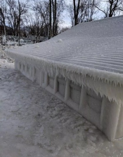 Цей пляжний будиночок знаходиться на узбережжі озера Онтаріо в Пуласкі, штат Нью-Йорк (США), і всього за кілька днів він виявився практично повністю похований під товстим шаром льоду.
