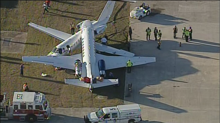 Зазначається, що інцидент стався з літаком, який здійснював аварійну посадку: через витік пального пілот не зміг вдало приземлитися на власну смугу і в'їхав у припаркований неподалік порожній літак.