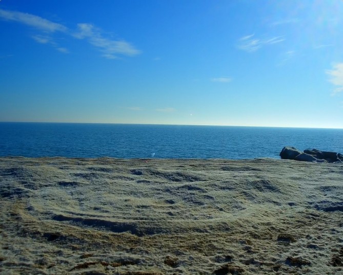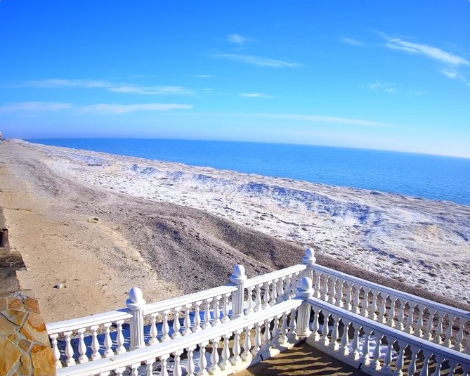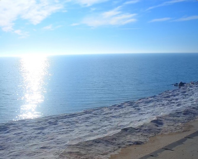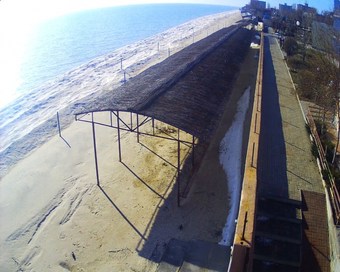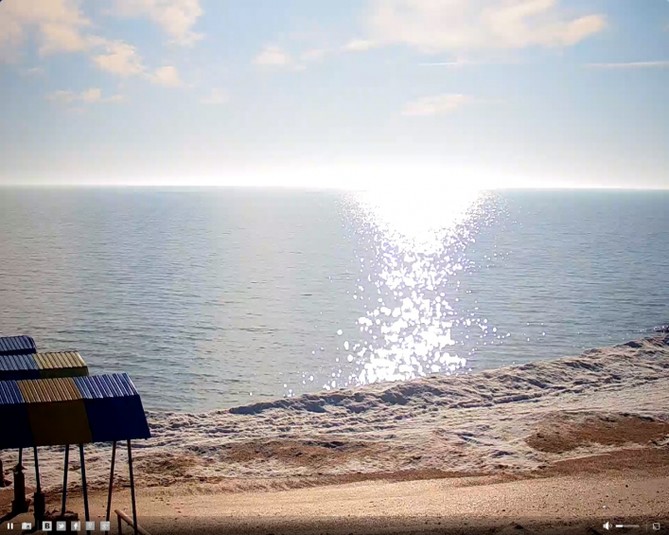 Ідеальна погода запанувала сьогодні на популярному запорізькому курорті. На календарі 1 лютого, а море виглядає чудово та так і манить прогулятися по узбережжю. Вода ж настільки блакитна, що зливається з кольором хмар.