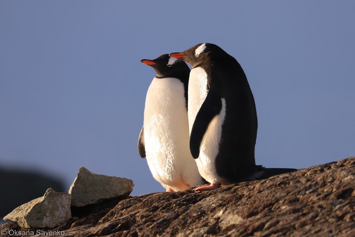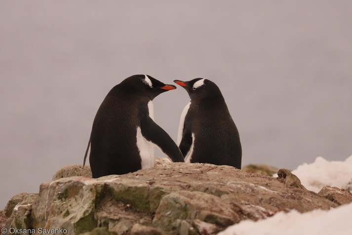 Ці пінгвіни – однолюби, і зазвичай створюють пару на все життя. Фотографії пінгвінів були зроблені Анною Соїною та Оксаною Савенко під час весняного періоду залицянь.