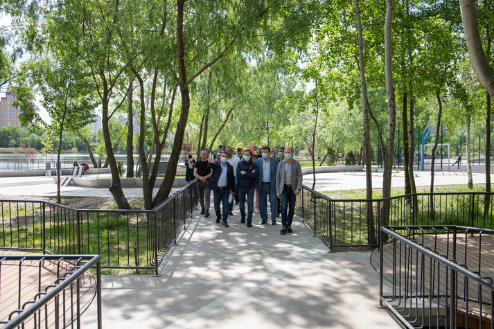 Міський голова столиці також розповів, що у парку розчистили територію, облаштували прогулянкові доріжки із фібробетону, влаштували веломаршрут та велопарковку. Встановили лави та урни. А також збудували громадську вбиральню. Влаштували і полив, встановили сучасне LED-освітлення, декоративне підсвічування лав, відеоспостереження. Здійснили озеленнення, висадили більше 60-ти дерев.