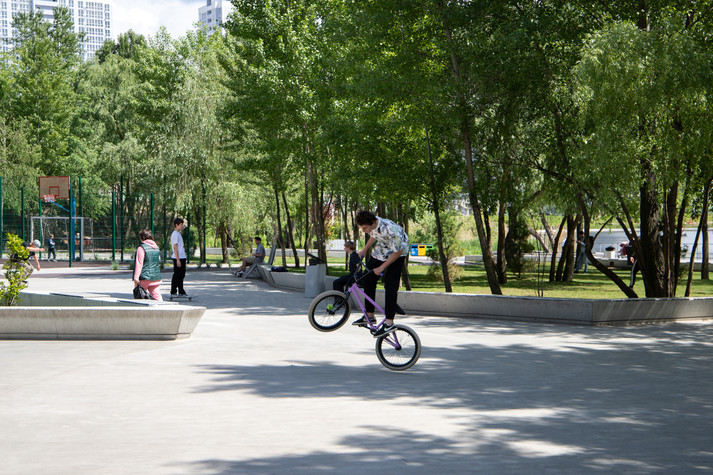 «Родзинкою парку є унікальна скейт-зона. Це – перший в Києві бетонний боул для катання на скейтборді, роликах та екстремальних самокатах. Під час будівництва радилися зі скейтбордистами з багаторічним стажем катання, як зробити локацію зручною і врахувати всі необхідні параметри. Площа боулу 270 кв. м, він має три рівні. І тут уже тренуються хлопці та дівчата, готуються до змагань», – ідеться у дописі.