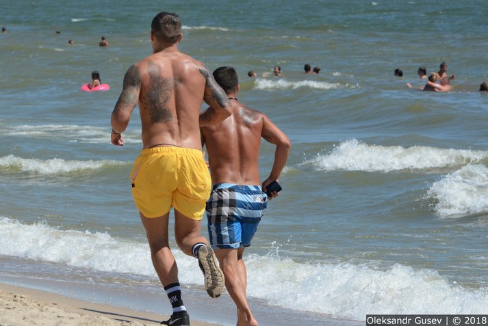 «Лежу, значить, я [засмагаю] під сонцем, коли тут на мене раптово падає чималенька тінь. Піднімаю шляпу… Перше, що побачив, - чорні носки з надписом Usyk. Тю, думаю, хто це в носках на пляж вийшов? Піднімаю голову вище і тут на тобі, виявляється на сусідніх лежаках відпочивають Усик з Ломанченком, піднялися і побігли вздовж пляжу», - написав фотограф.