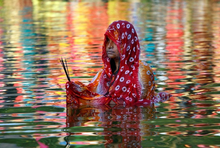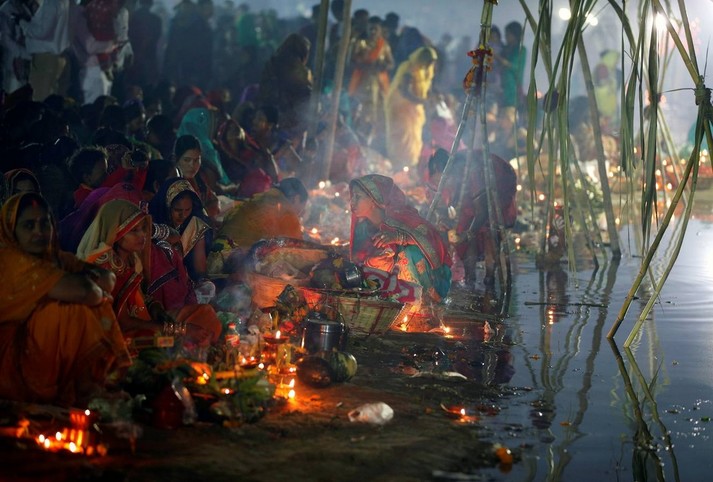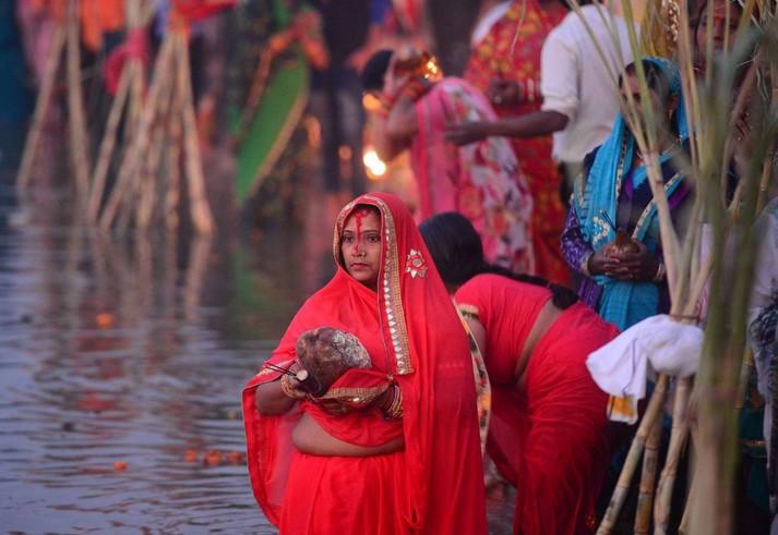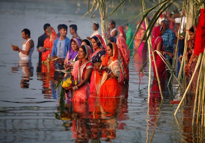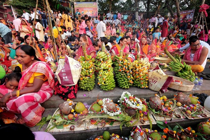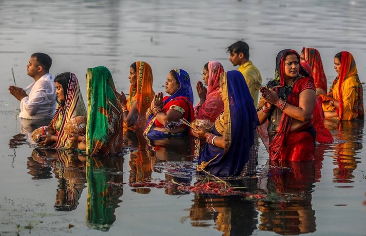 В Індії пройшов фестиваль Чхат Пуджа, присвячений богу Сонця Сур'ї і його дружині Уші. У святі взяли участь сотні тисяч сімей.