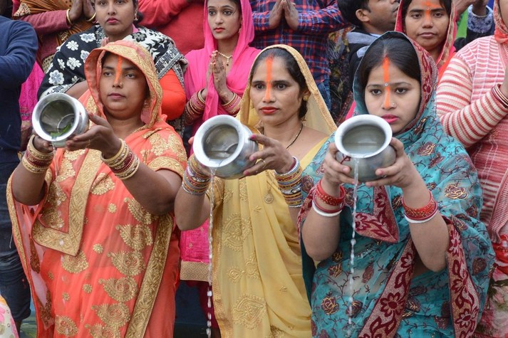 За традицією в цей день індуїстські жінки, стоячи у воді, просять про благополуччя, зцілення та виконання бажань