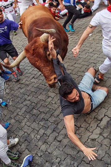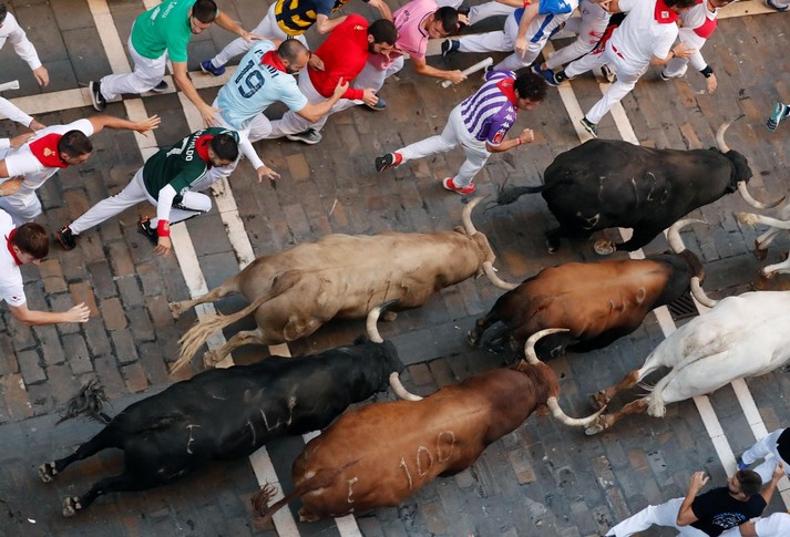 Днями в рамках фестивалю Сан-Фермін в іспанському місті Памплона пройшов фінальний забіг з биками. Любителі гострих відчуттів тікали від стада биків по міських вулицях.