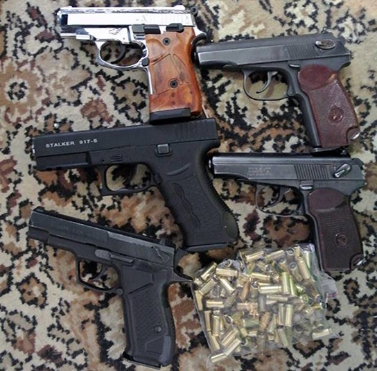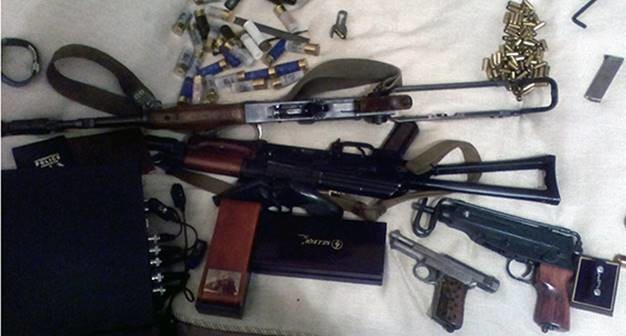 Під час санкціонованого обшуку за місцем мешкання фігуранта – 51-річного раніше неодноразово судимого за майнові злочини чоловіка, правоохоронці вилучили цілий арсенал зброї: два автомати Калашнікова, пістолет «Маузер», пістолет «Скорпіон», гранати «РГД-5» та «Ф-1», глушники, оптичний приціл, пристрої для відстрілу гумовими кулями, пневматичні пістолети, патрони різного калібру.