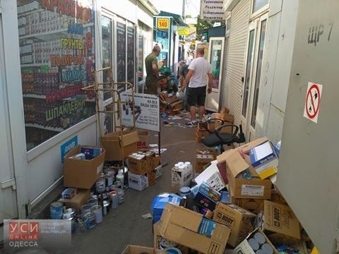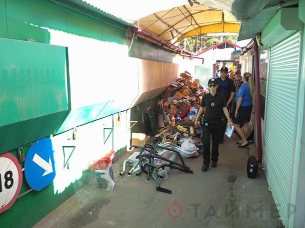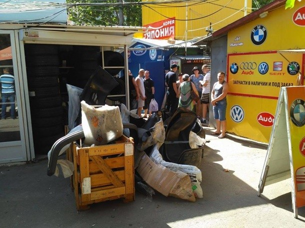 За даними видання, сьогодні вночі, 17 червня, тут розкрили понад 20 павільйонів. Після цього товар викинули на вулицю, заваливши ряди запчастинами і хімією. Крім того, на павільйонах змінили замки.