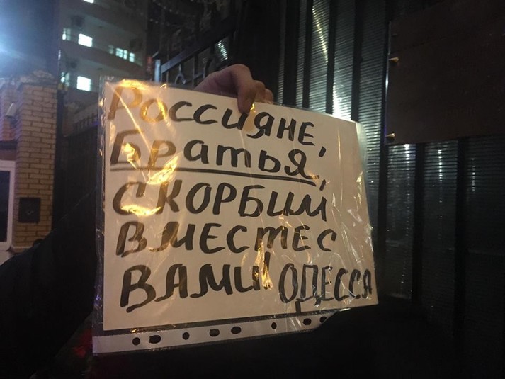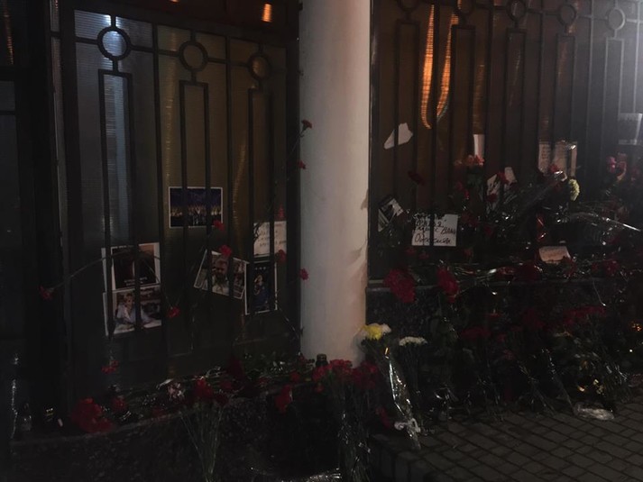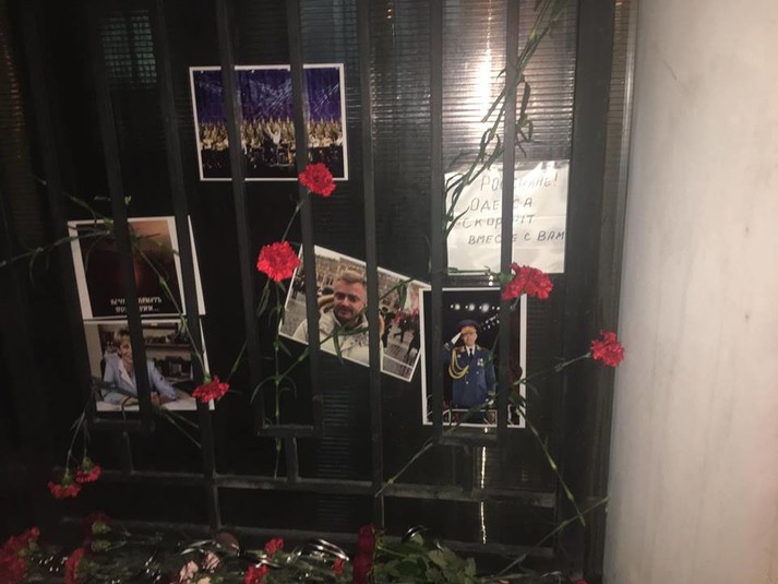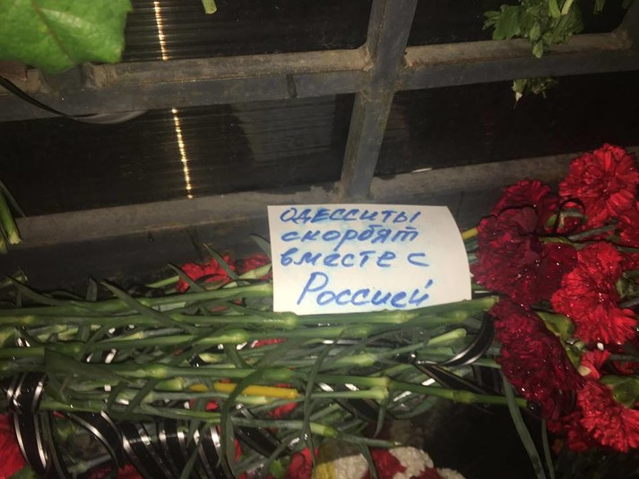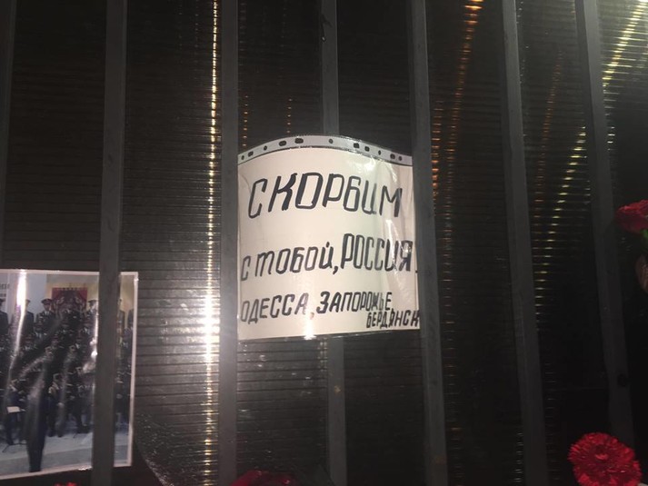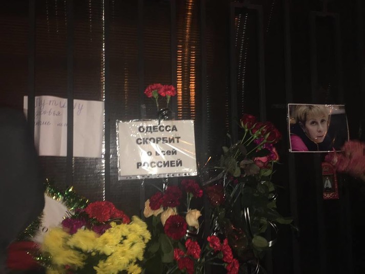 Під консульством Російської Федерації в Одесі активісти «Правого сектора» викинули на смітник записки і квіти за загиблими в авіакатастрофі Ту-154 біля Сочі