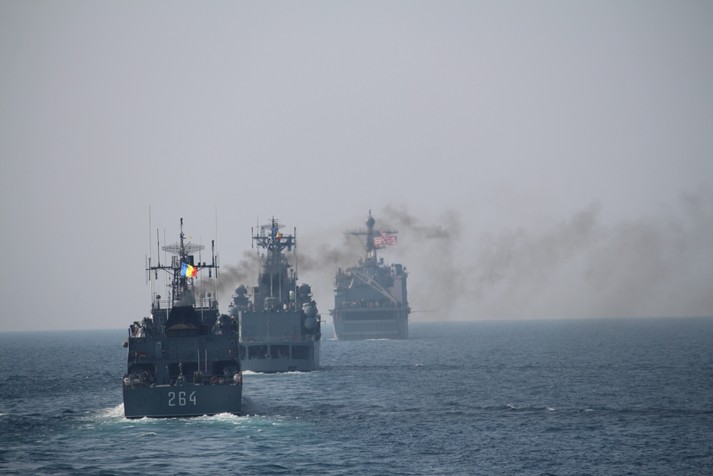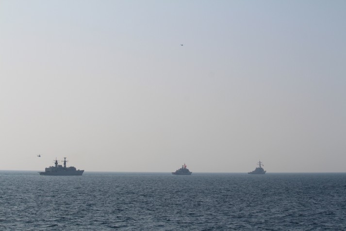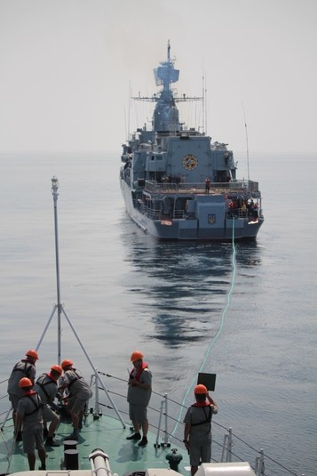 Завершилась морська фаза навчань «Сі Бриз-2016» традиційним фотексом, коли кораблі-учасники навчань пройшли спільним строєм із розгортанням національних прапорів.