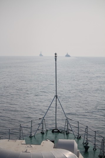 Морська фаза навчань «Сі Бриз-2016» завершилась традиційним фотексом, коли кораблі-учасники навчань пройшли спільним строєм із розгортанням національних прапорів