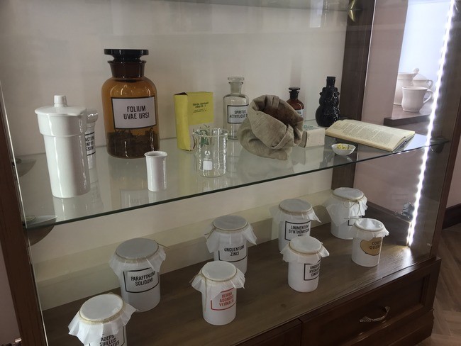 В експозиції представлено робоче місце провізора, фармацевтичне обладнання, склянки з препаратами, медичні книги, старий касовий апарат. За словами Лариси Мартиненко, експозицію надалі розширюватимуть.