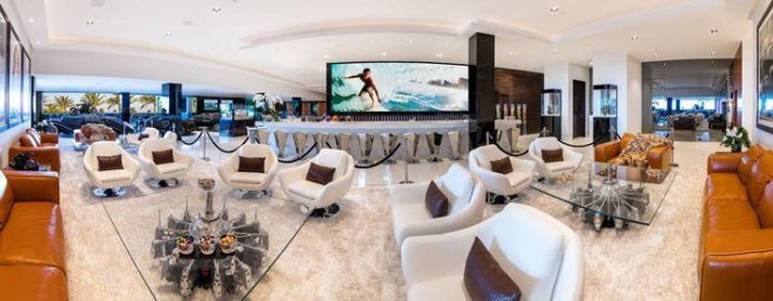 Чотириповерховий будинок займає 3500 кв.м. у ньому є 21 ванна кімната, 3 кухні, 6 барів, масажна та SPA-кімнати, фітнес-центр, боулінг-клуб, 2 винні кімнати та кінотеатр на 40 глядачів.