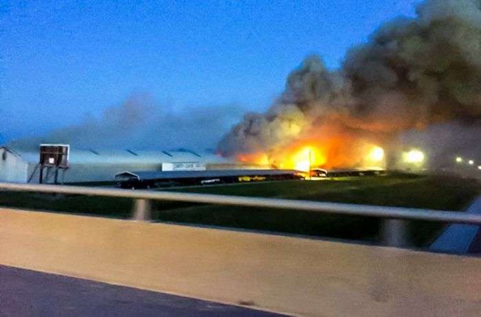 Приблизно о 20:00 пожежники отримали повідомлення про пожежу і виїхали на місце події. До моменту їх прибуття вогонь поширився на парковку, шоурум і склад.