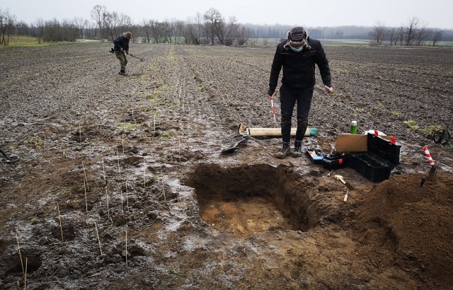 Зараз було знайдено горщик, який вже був розбитий плугом очевидно при осінньому оранні землі. Плуг потягнув монети за собою у певному напрямку, але тракторист їх не помітив.