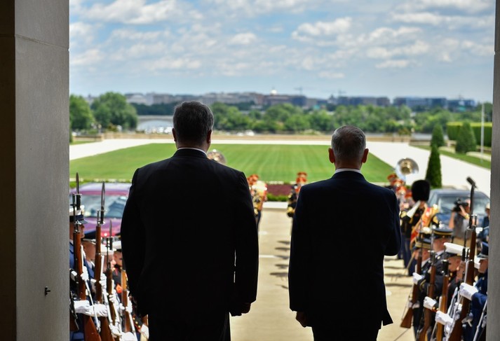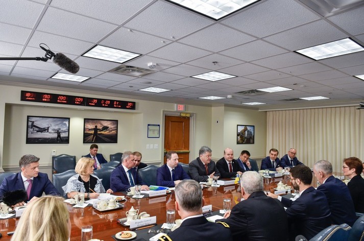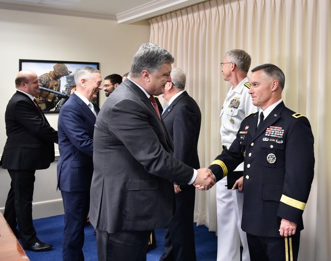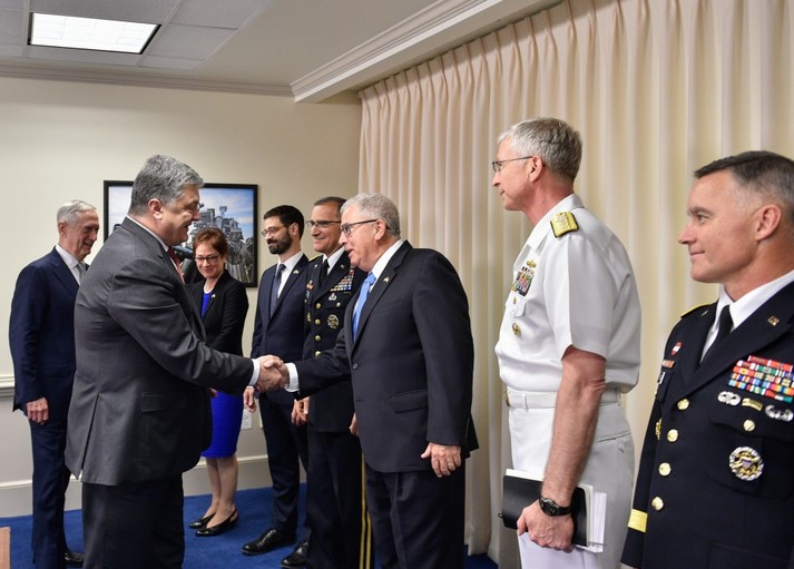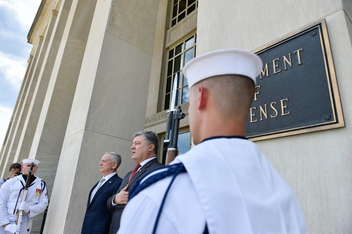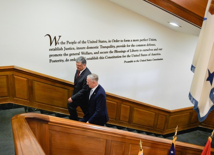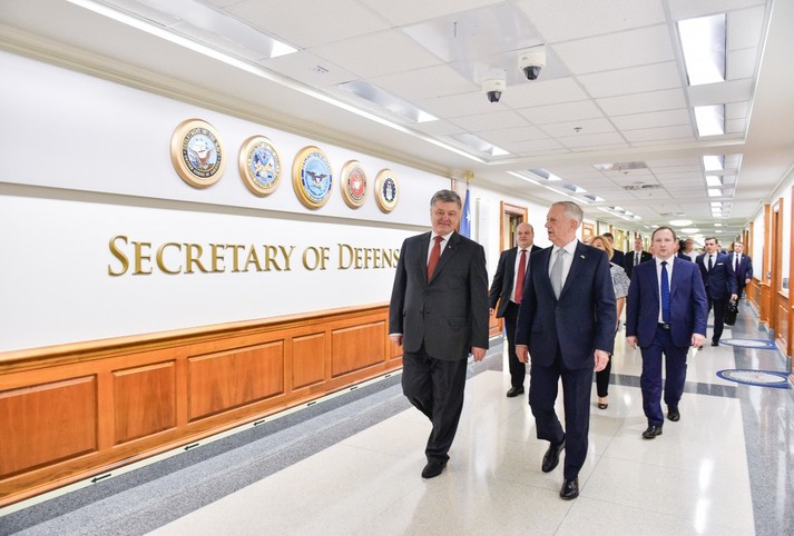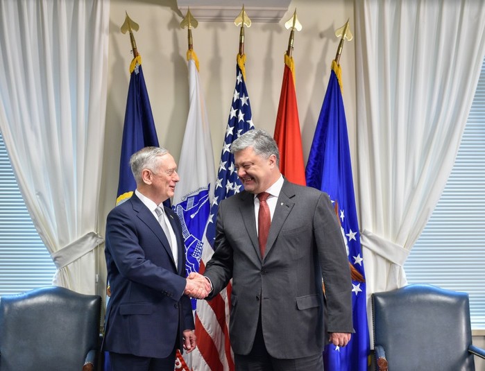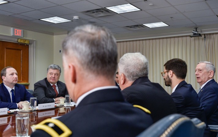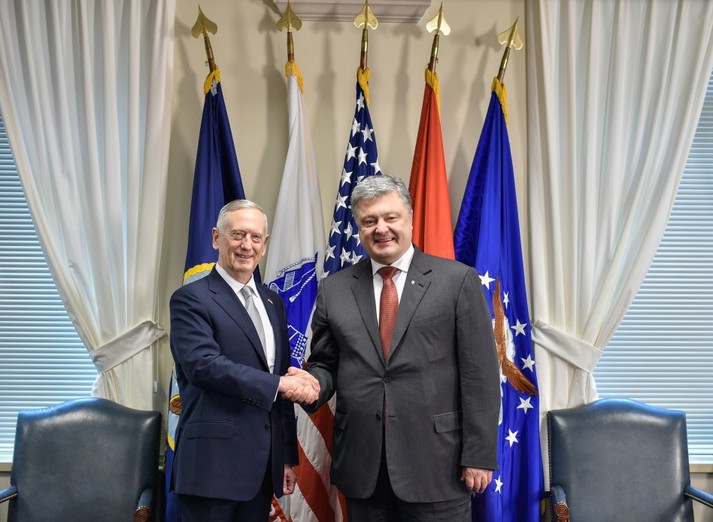 Окремо Петро Порошенко та міністр оборони США Джеймс Меттіс обговорили ситуацію на Донбасі в наслідок російської агресії. Було висловлено занепокоєння у зв’язку з постійними спробами Росії та підтримуваних нею бойовиків підірвати процес мирного врегулювання.