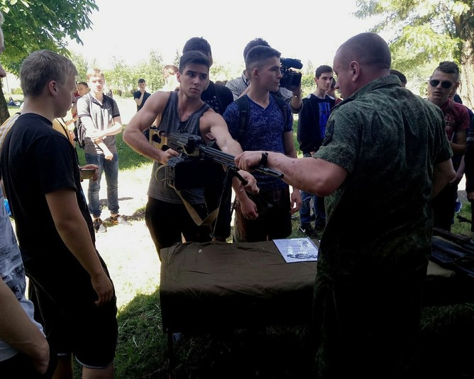 Участь в «військових зборах» приймають близько 250 дітей. За «навчально-польові заняття» школярів відповідають люди в камуфльованій формі з нашивками незаконних збройних бандформувань.
