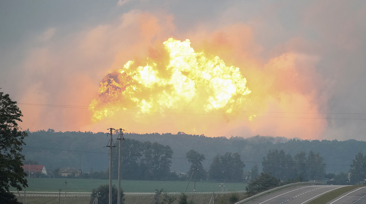 В містечку Калинівка під Вінницею у вівторок близько 22:00 почали вибухати снаряди на складах із боєприпасами та зброєю. Склад має загальну площу понад 1000 гектарів і забитий боєприпасами різних типів. Сховище відкрите, норми завантаження складу перевищені в кілька разів.