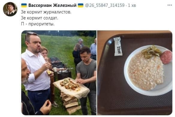 Українці відзначають, що такого знущання над українською армією давно не бачили. Дехто почав порівнювати шашличне частування «у Зеленського», влаштоване журналістам, і «баланду» в українській армії.