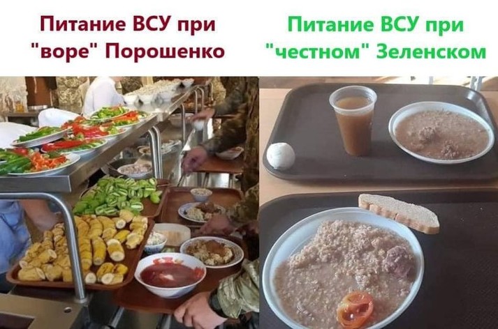 Прихильники діяльності Петра Порошенка не стримувалися в порівняннях, мовляв, як годували українських бійців за часів, коли він був головнокомандувачем, акцентуючи увагу на тому, що армію зараз просто «дерибанять» крадії та аферисти.