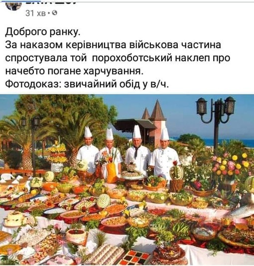 Опісля того, як у мережі оприлюднили фото харчів, якими годують українських бійців, користувачі в Faceboоk не знали, чи сміятися, чи плакати, адже «смакота» для воїнів нагадала порції для худоби.