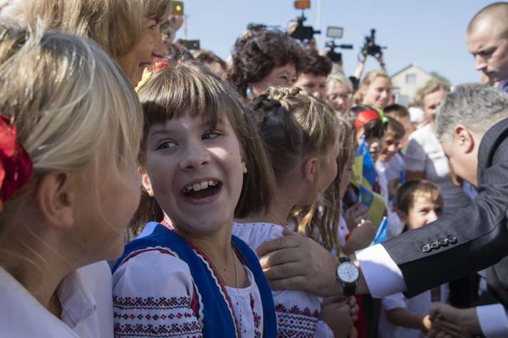 «У мене буде до вас велике прохання з дуже важливою ініціативою – якби найкращі школи Львівщини взяли шефство над однією школою на Донбасі», - сказав Петро Порошенко та додав: «Бо ті хлопчики і дівчатка першокласники, які так співали гімн, ніколи вже не повернуться в минуле – вони народилися за часів незалежності, вони є справжніми українцями».