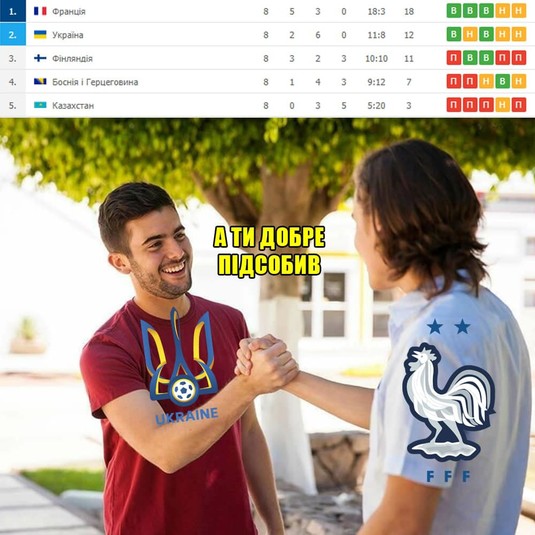 Зокрема, інтернет-жартівники дякують збірній Франції: саме успішна гра чемпіонів світу проти Фінляндії дозволила нашій команді продовжити боротьбу.
