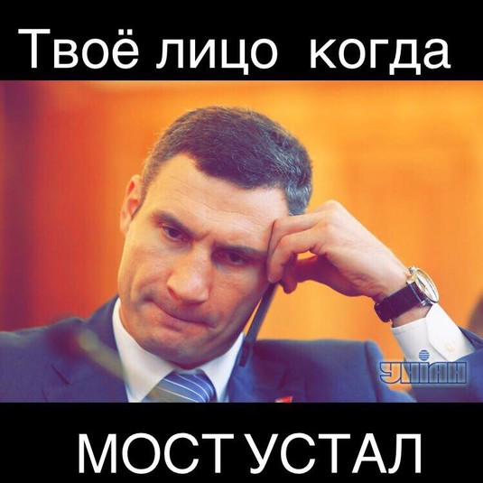 Саме на слова про «втомився від часу» бурхливо відреагували користувачі соціальних мереж, які створили фотожаби, присвячені меру Києва Віталію Кличку. Також не оминув своєю увагою ситуацію з мостом і інтернет-мем Почекун.