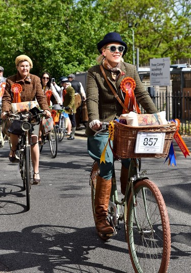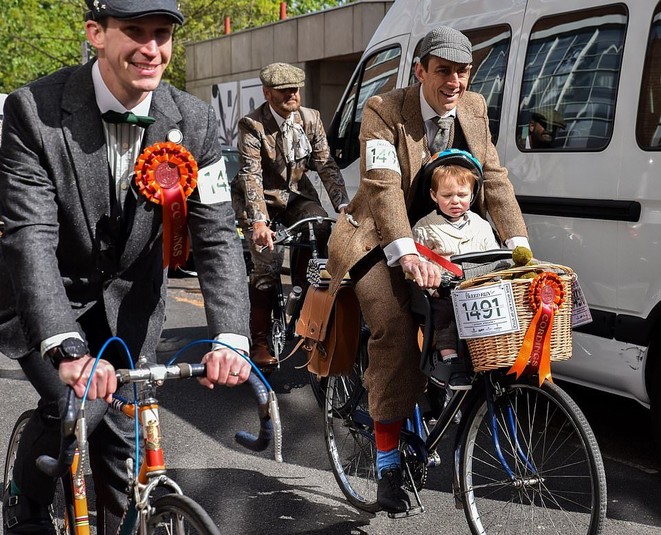 Сотні чепурних велосипедистів наділи свої твідові костюми, щоб покататися історичними вулицями Лондона під час щорічного велопробігу «Tweed Run». Велосипедисти в вінтажних вбраннях подолали 12-мильний маршрут з Клеркенуелла до Південного Кенсінгтона повз будівлю Парламенту, Музей історії природи і Букінгемський палац.