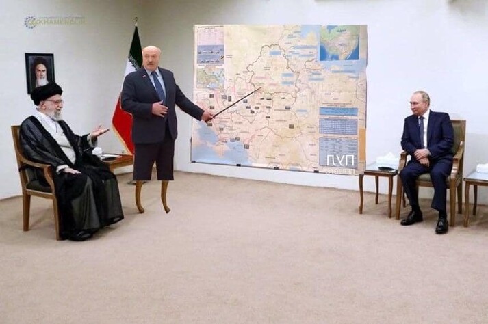 Фото із зустрічі Путіна та Алі Хаменеї стало приводом для жартів у мережі. Усе тому, що політики сидять на значній відстані один від одного. Відтак, українці почали уявляти, кого можна було б поставити між ними. Місця вистачило і новому тимчасовому очільнику Служби безпеки України Василеві Малюку, і білоруському диктатору Олександрові Лукашенку, і навіть колишньому раднику міністра внутрішніх справ України Зорянові Шкіряку.