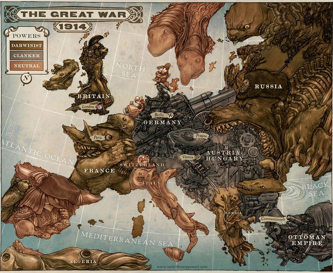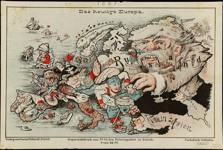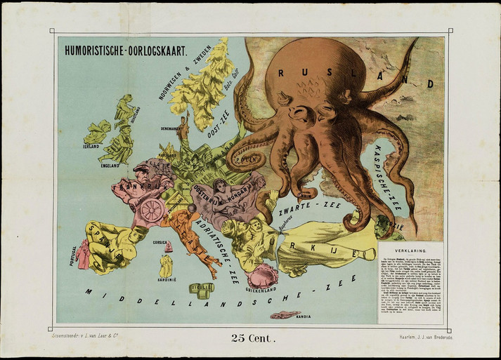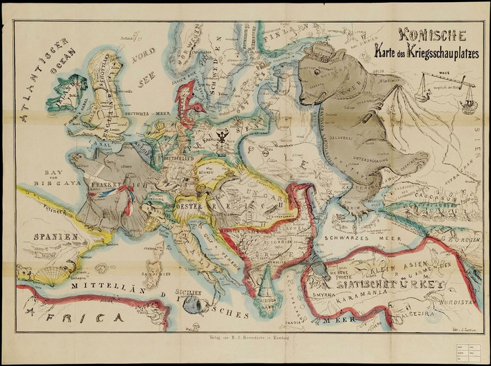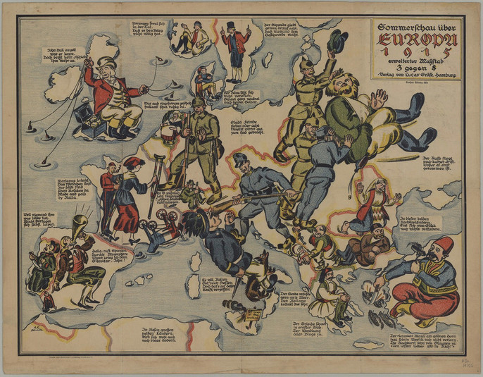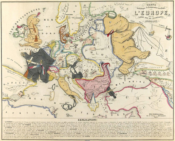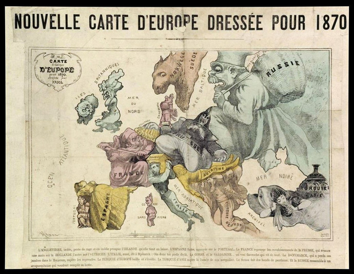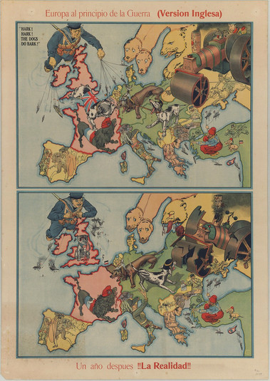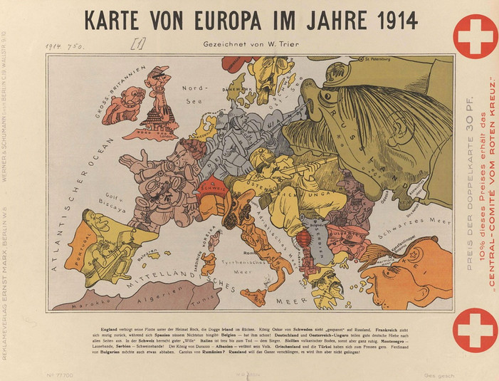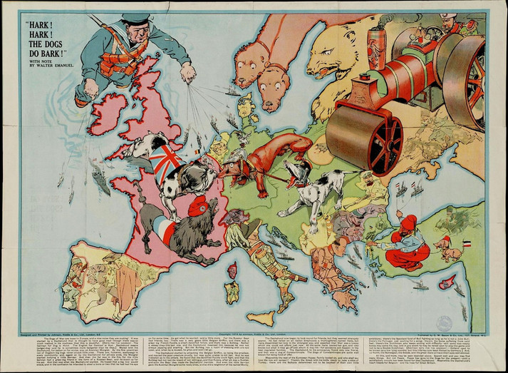 Ці карти створювалися в Європі задовго до Першої світової війни і під час неї. Цікаво відстежувати, в якому образі представляли ту чи іншу країну в різні періоди часу.