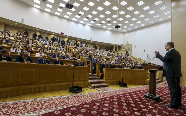 Президент Петро Порошенко зустрівся зі студентами-істориками у Київському національному університеті ім. Т.Г. Шевченка та поділився власним баченням ролі історії та істориків у житті сучасної України