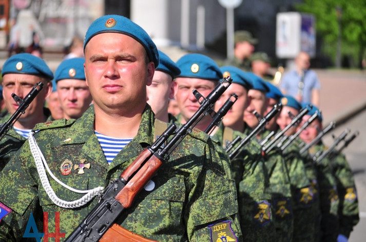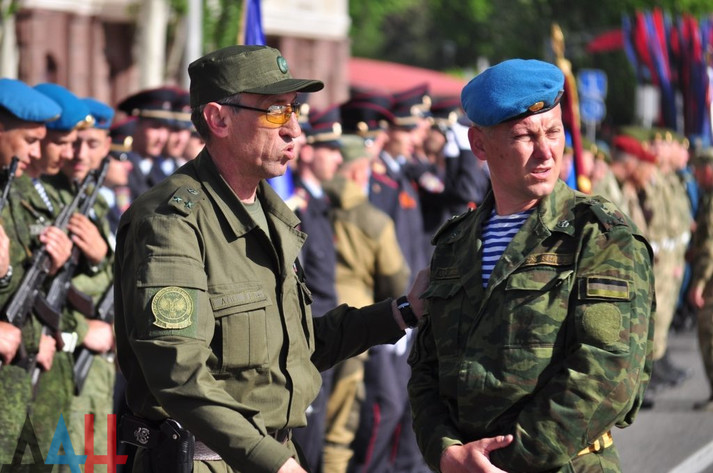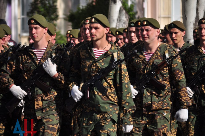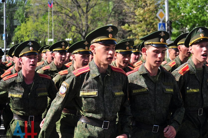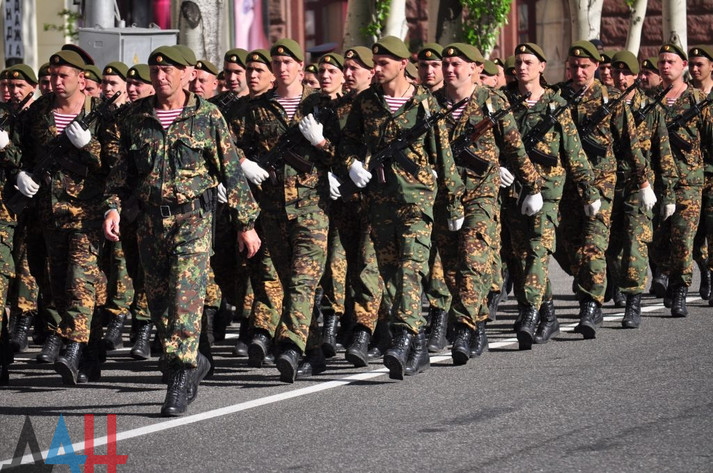 «Розрахунки вже готові для участі в параді, зараз військовослужбовці відпрацьовують дистанцію проходження. Репетиції в частинах почалися більш ніж півроку тому», - розповів терорист Кононов.