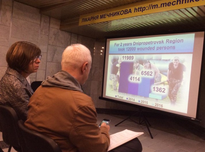 Євродепутати Ребекка Хармс, Міхаель Боні і Яромір Стетіна відвідали в лікарні імені Мечнікова в Дніпрі поранених учасників АТО