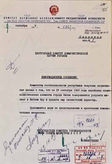 Центр досліджень визвольного руху спільно з Архівом СБУ опублікував в електронному архіві документи КДБ про те, як радянські спецслужби перешкоджали вшануванню жертв Бабиного Яру