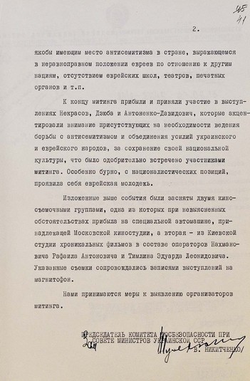 У 25 опублікованих документах є інформація про заходи радянської держбезпеки та МВС з боротьби із сіонізмом та «єврейським екстремізмом» у 1966–1978 роках. До списку найбільших «провокаційних екстремістських акцій» належало вшанування євреїв, загиблих від рук нацистів під час Другої світової війни в Бабиному Яру в Києві.