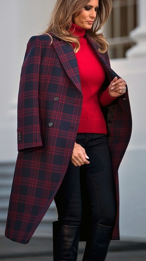Для цієї події вона вбралася у пальто за $1600 від Calvin Klein. Свій образ перша леді США доповнила чоботами на підборах, джинсами та червоним светром.