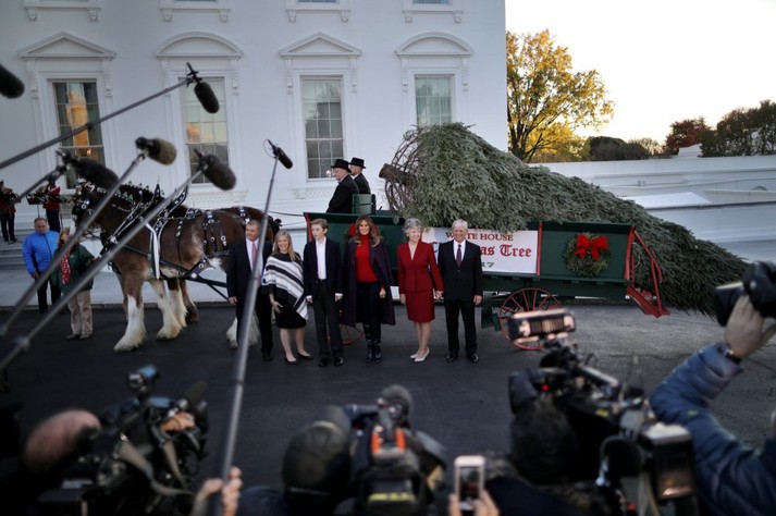 Дружина президента США Дональда Трампа Меланія разом з сином Берроном зустріли Різдвяну ялинку у дворі Білого дому.