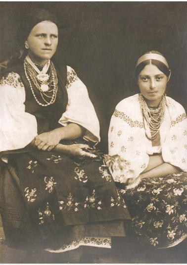 На фотографіях представлені переважно жінки у святковому одязі, з прикрасами і намистом.