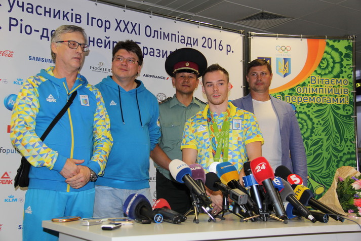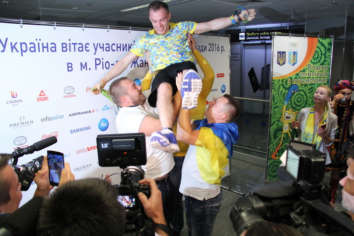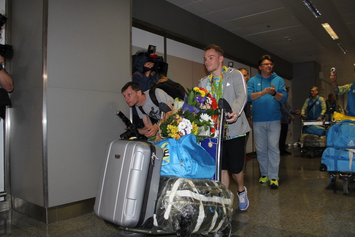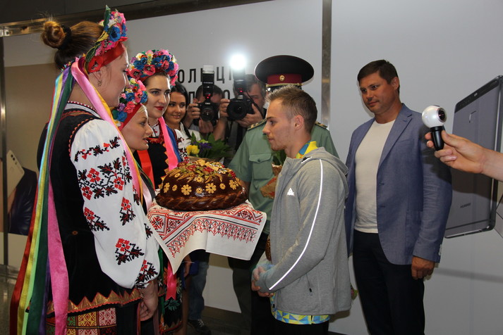 У Міжнародному аеропорту «Бориспіль» чемпіона зустріли міністр молоді та спорту України Ігор Жданов, начальник Управління спорту Міністерства оборони України Юрій Фіногенов, начальник Центрального спортивного клубу Збройних Сил України Вадим Височин, батьки, друзі та чисельні вболівальники, повідомляє прес-служба Міністерства оборони України.