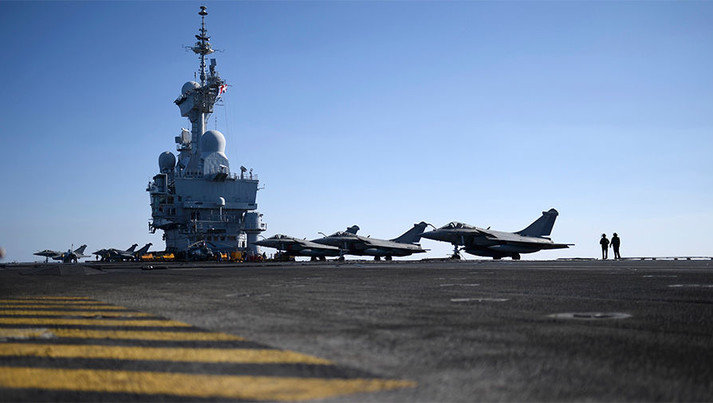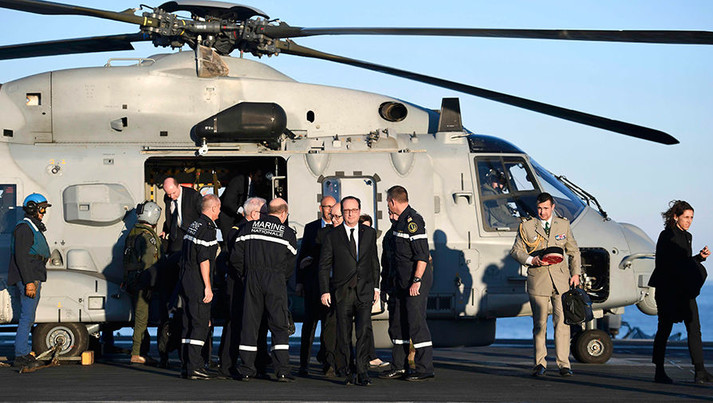 З минулої осені бойовий корабель знаходиться в Східному Середземномор'ї і бере участь в антитерористичній операції проти бойовиків «Ісламської держави» Сирії та Іраку. Олланд високо оцінив результати військової кампанії і повідомив морякам, що вони незабаром вирушать додому.
