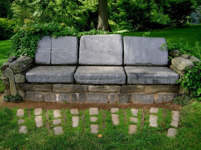 Не менш оригінально виглядає й доріжка або диван з кріслом із натуральних каменів. Такі меблі стануть справжньою родзинкою в інтер'єрі саду.