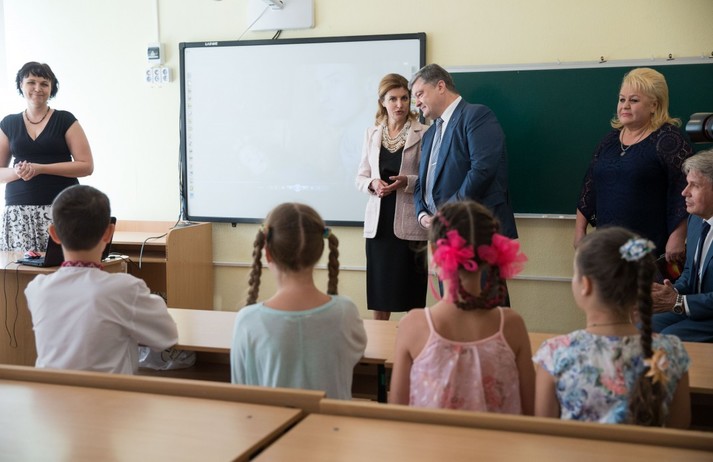 Зокрема, подружжя Порошенків ознайомилося з можливостями школи та поспілкувалося з її вихованцями.