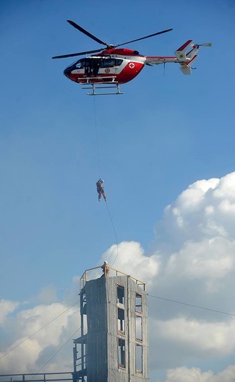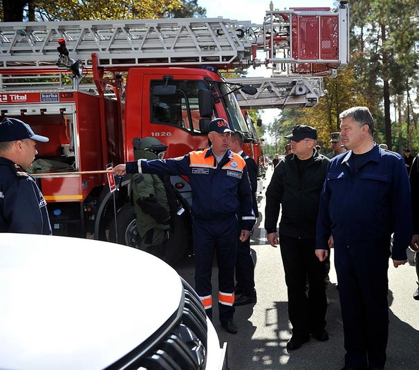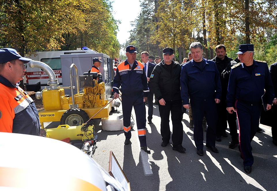 В День рятівника Президент Петро Порошенко відвідав навчальний полігон ДП «Мобільний рятувальний центр ДСНС України» у Київській області, де оглянув можливості пожежно-рятувальних сил під час проведення операцій з ліквідації надзвичайних ситуацій.